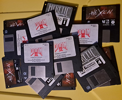 Alas, the original floppies. I myself owned Ultimate Doom on PC-CDROM so it doesn't count unless you count CDs loaded with shareware from '93/'94 that I owned back in the day. These are also not too cheap anymore because it's not like id software is ever going to reproduce floppy disks. Why anyone would want them and less seem to covet the CD-ROMS I'll never know. I found double copies so far of Ultimate Doom and Doom II on CD-ROM for $2.99 at Goodwill so far. |